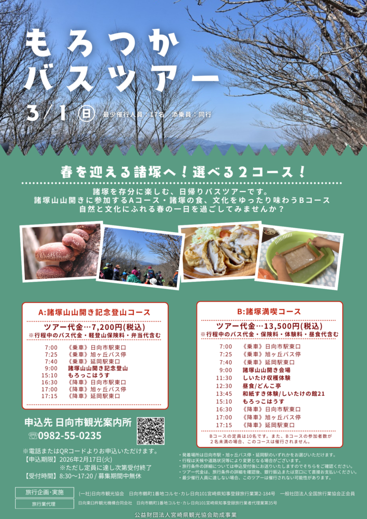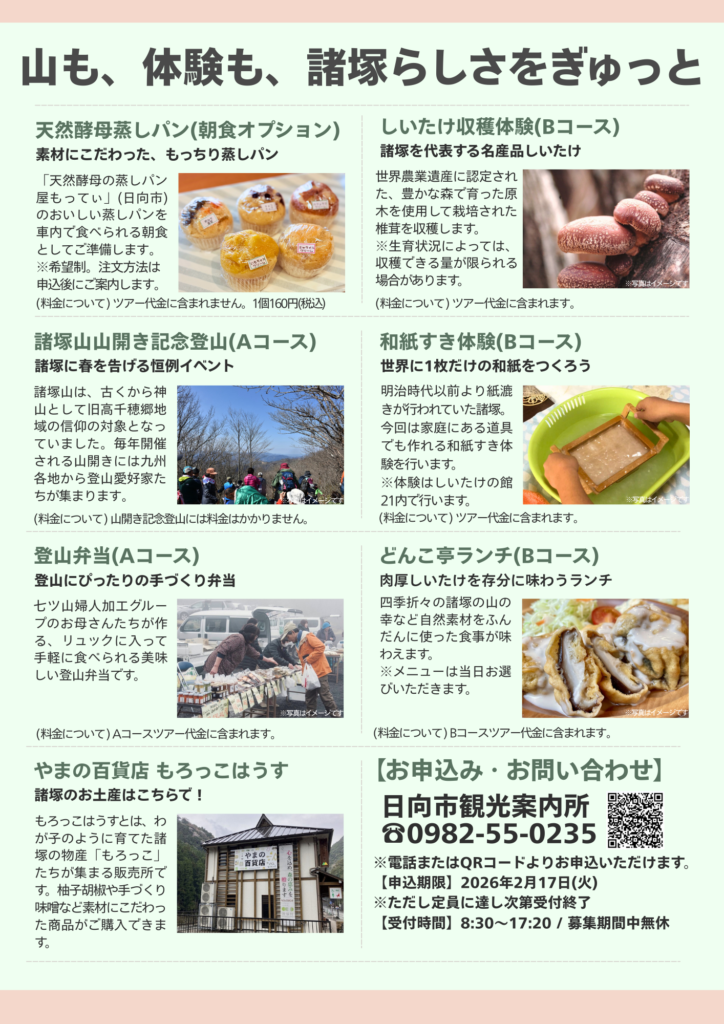 3月1日(日)に諸塚を存分に楽しむ、日帰りバスツアーを開催します!