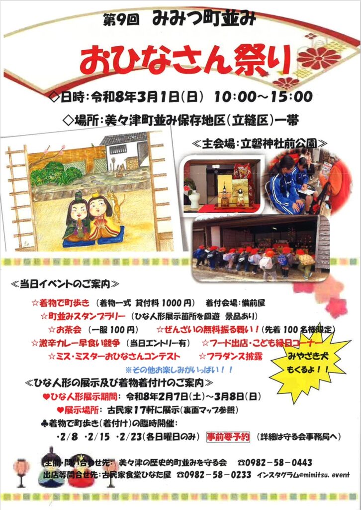 日向市美々津の春の風物詩「みみつ町並み・おひなさん祭り」が開催されます!